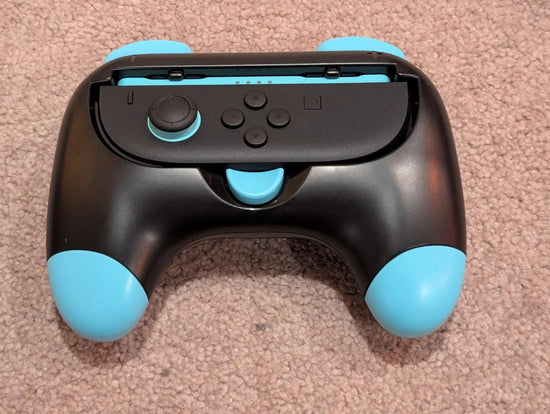 The grip clicks onto the controller firmly and instantly feels more like a full-sized gamepad. I can play for hours without my hands cramping. The blue accents match my Joy-Cons perfectly and the plastic feels solid, not cheap.