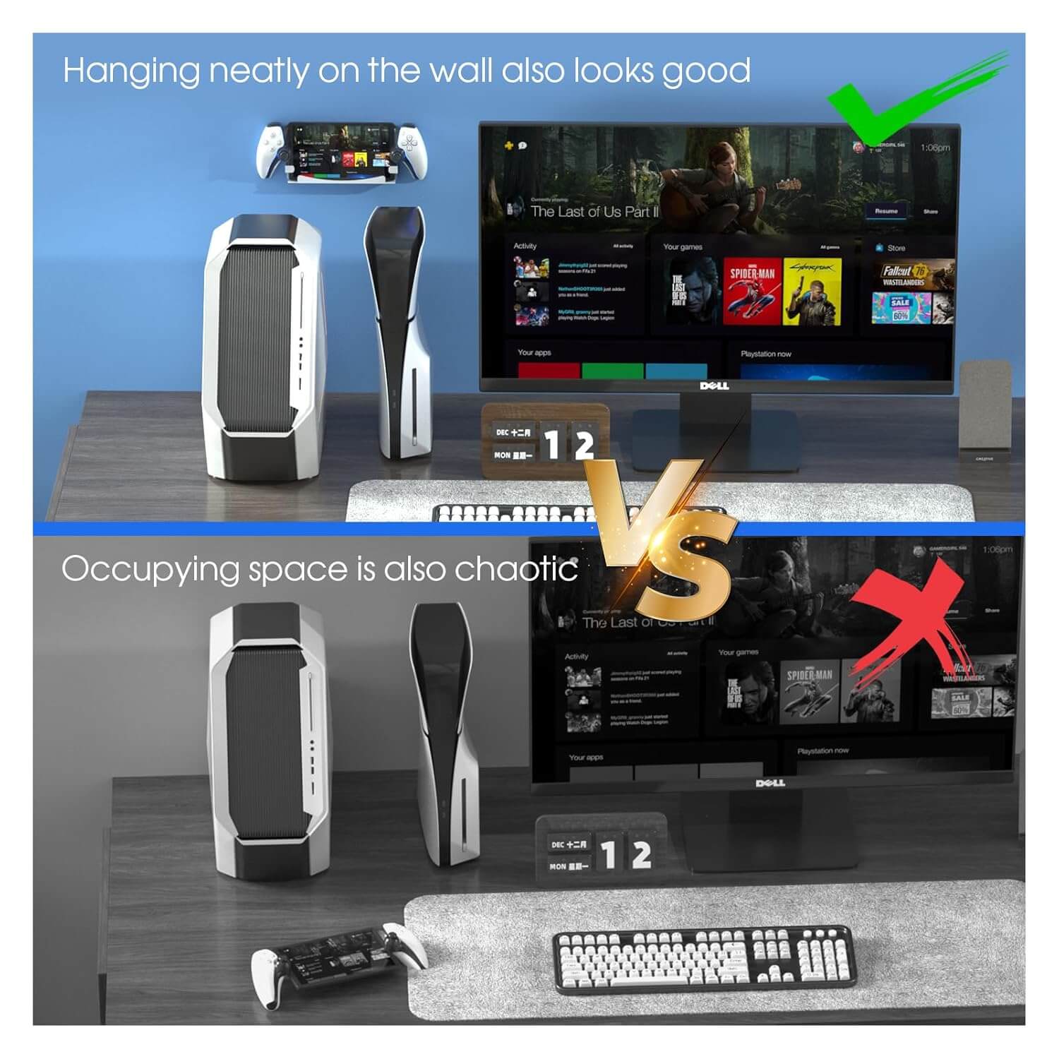 SPACE-SAVING DESIGN - This wall mount is perfect for those who want to save space and keep their gaming area clean and tidy. Easily mount your PS Portal behind your TV or on your wall without having to worry about clutter on the desk.