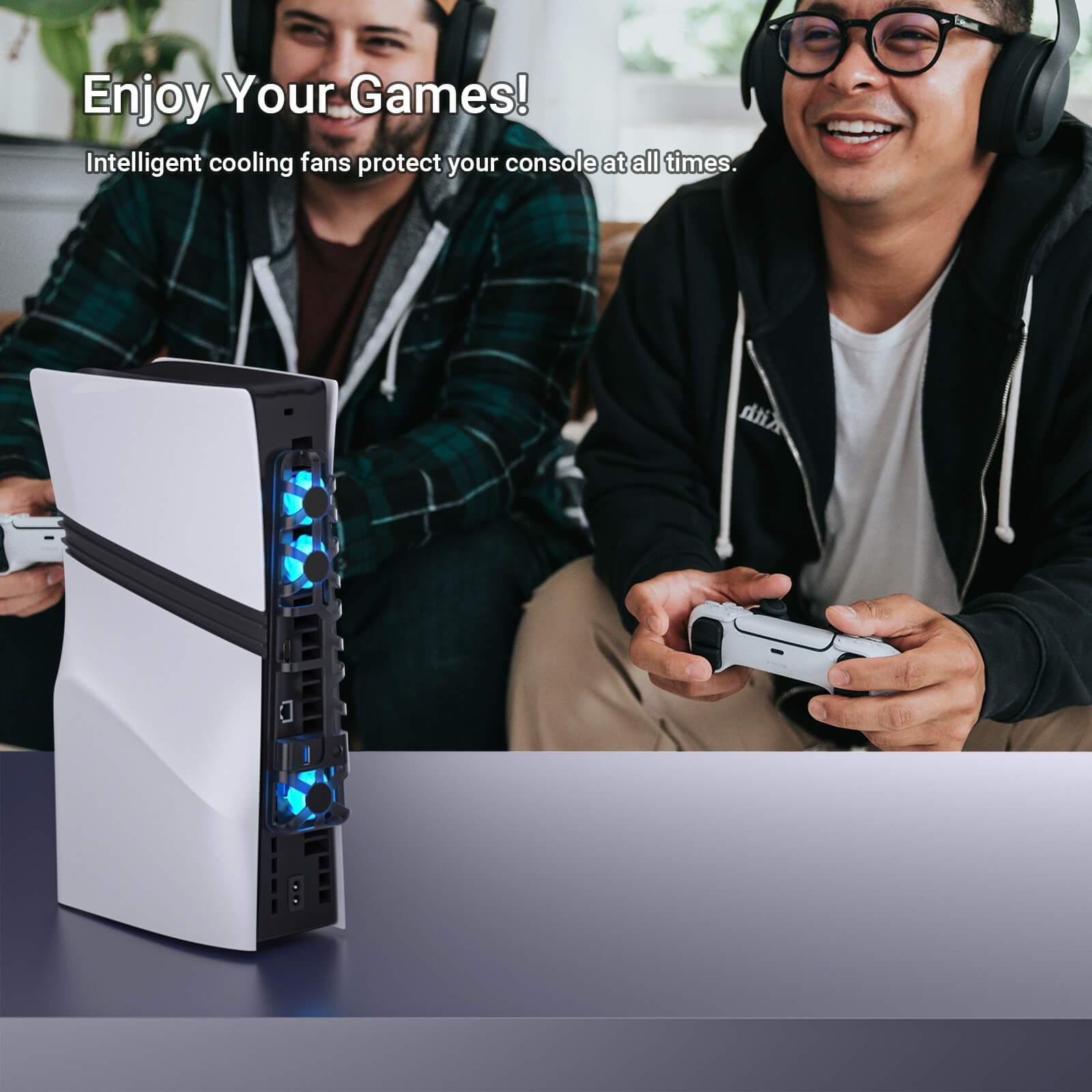 Maximize Cooling Power with the Ultimate PS5 Pro Fan Black – Equipped with triple high-speed fans, this ps5 pro cooler efficiently dissipates heat and keeps your PlayStation 5 Pro running cool and stable—even during marathon gaming sessions. A must-have for any hardcore gamer.