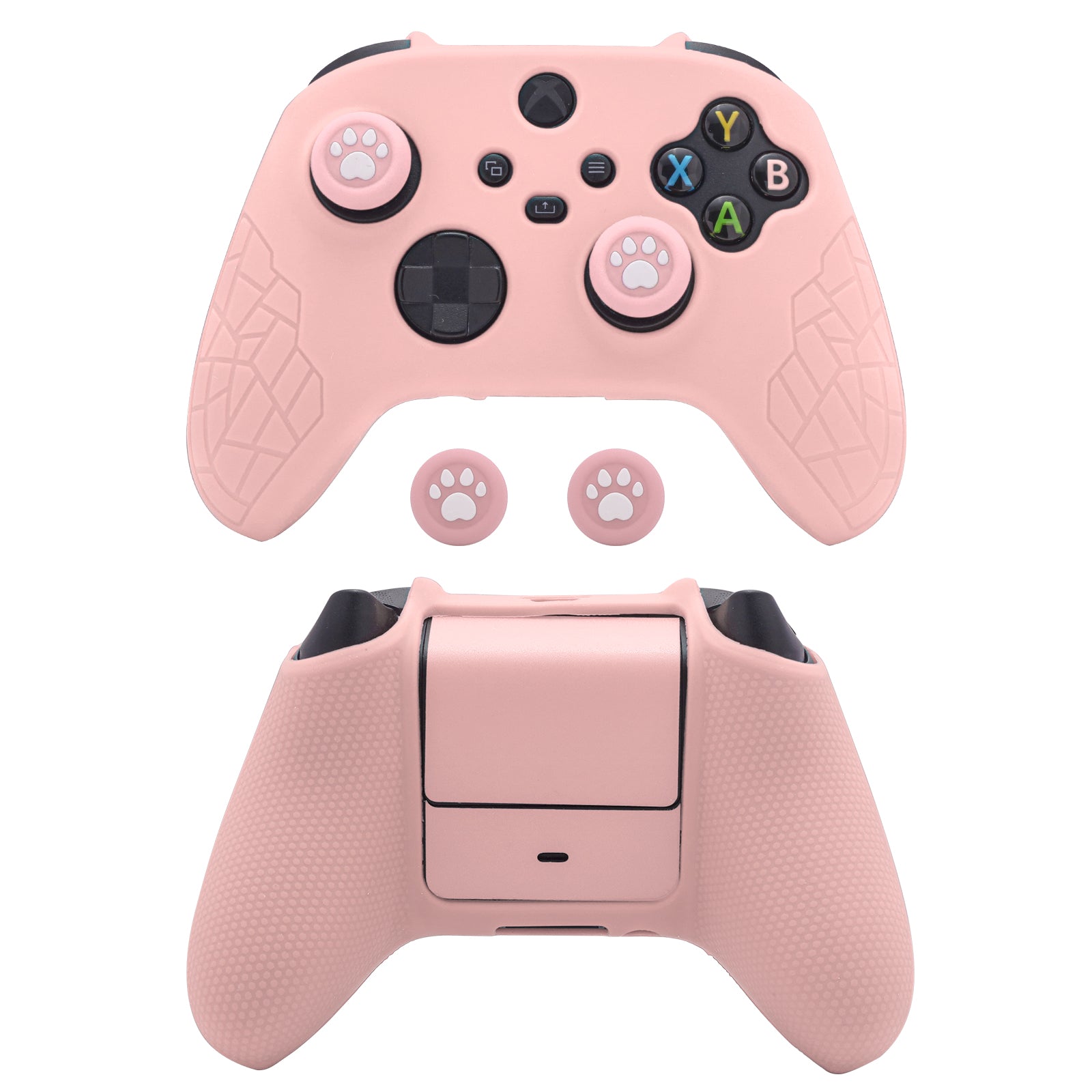 Package includes 1 Silicone Case for Xbox Series X controller, 1 pink sticker, and 2 Xbox Series X controller thumb grips.